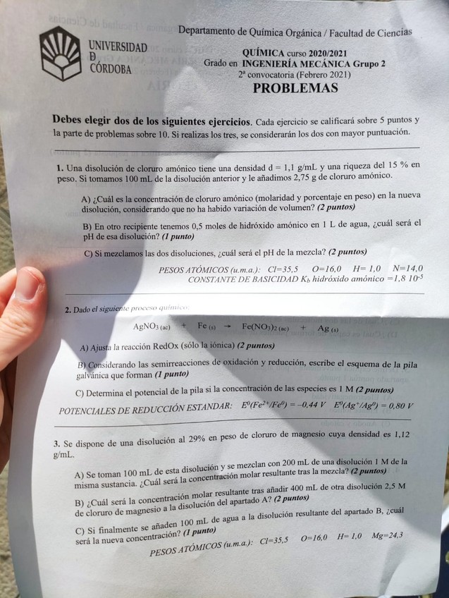 Examen química Febrero 2020