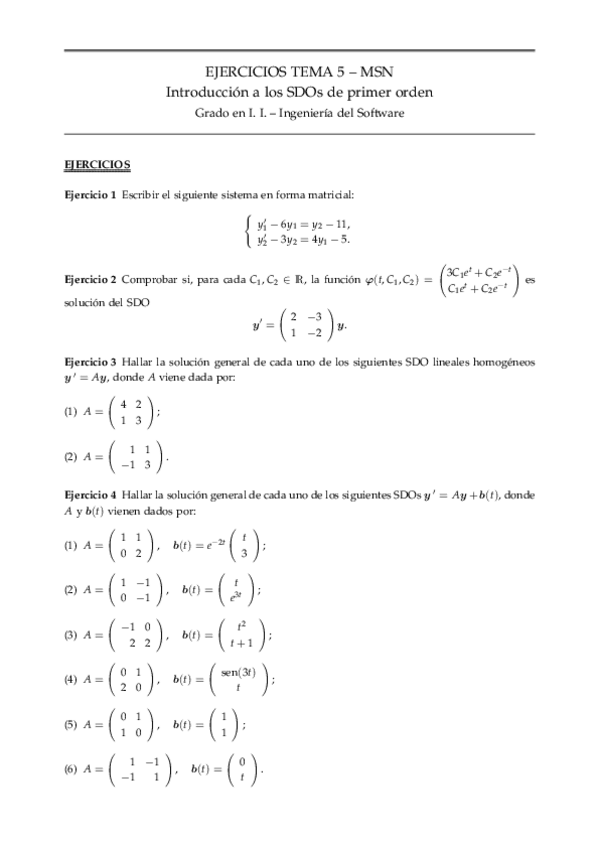 He publicado nuevos ejercicios de 3º Modelado y Simulación Numérica: Ejercicios MSN