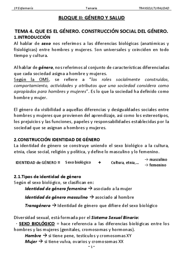 He publicado nuevos apuntes de 1º Transculturalidad, Genero y Salud: Transc Bloques I II y III