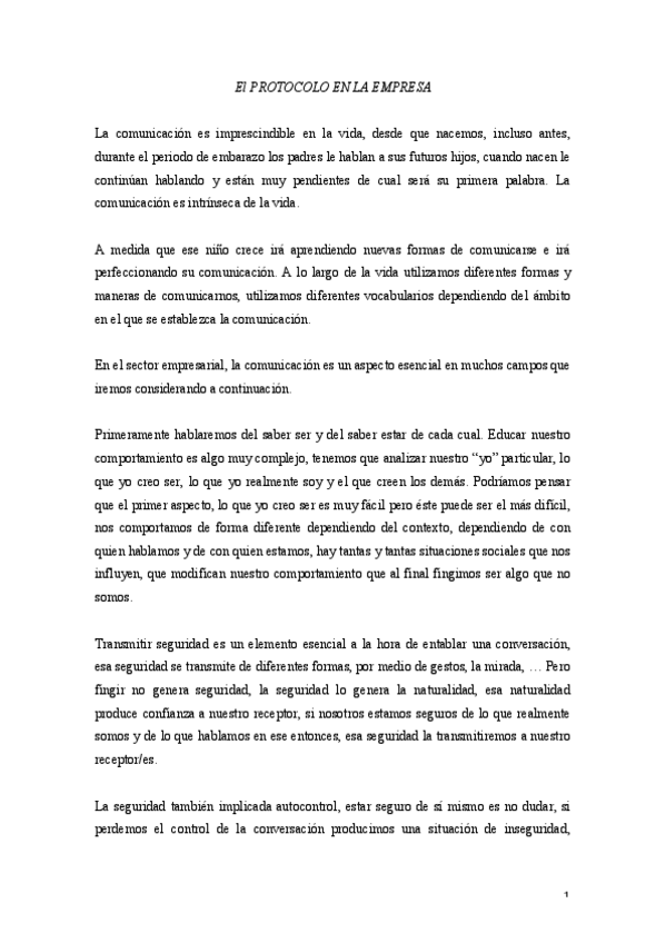 He publicado nuevos trabajos de 1º Comunicación y Técnicas de Expresión en Español: Protocolo en la Empresa.pdf