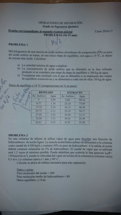He publicado nuevos examenes de 3º Operaciones de Separación: Exámenes