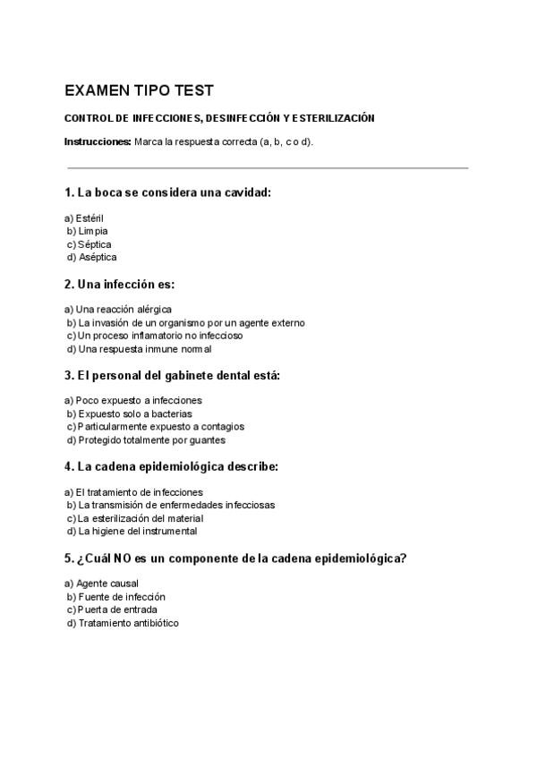 Examen tipo test del tema 3 de TOE (basado en el libro Técnicas de Ayuda Odontológica y Estomatológica (macmillan education)) CON LAS SOLUCIONES EN LA ÚLTIMA HOJA