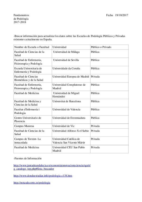 He publicado nuevos ejercicios de 1º Fundamentos de Podología: facultades de podologia.odt