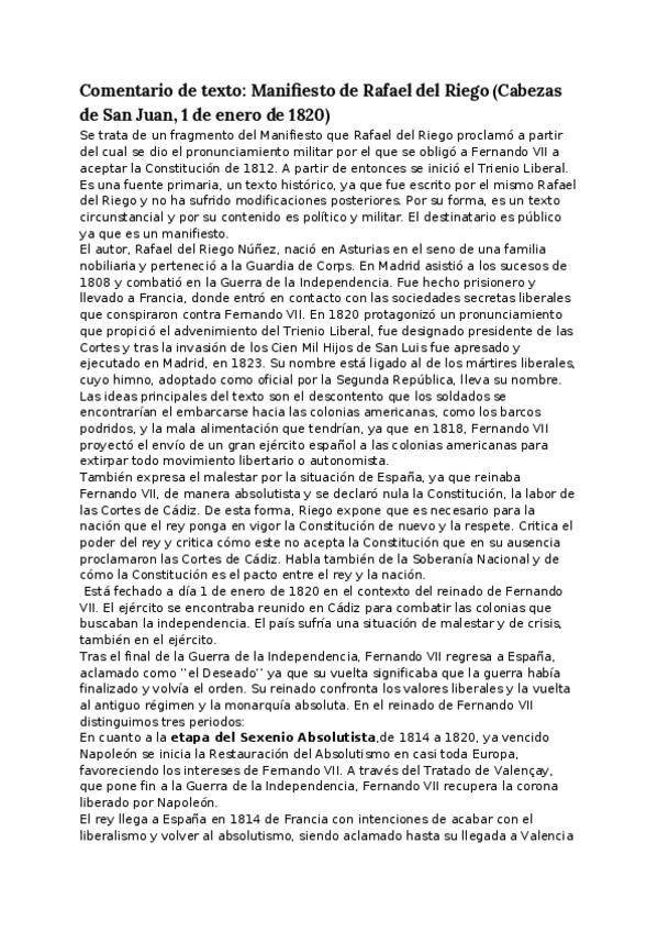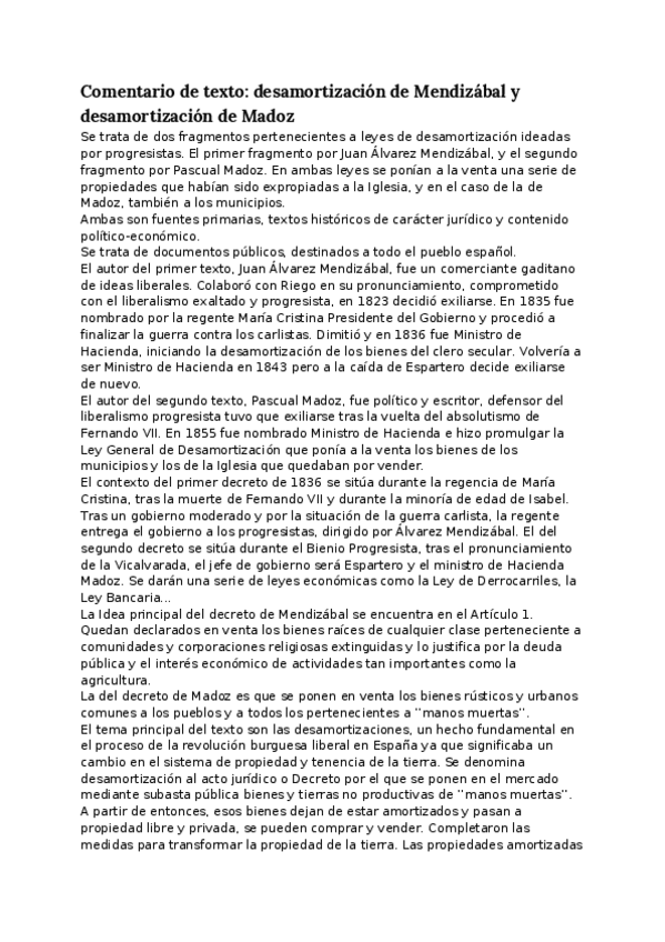 COMENTARIOS DE TEXTO SIGLO XIX