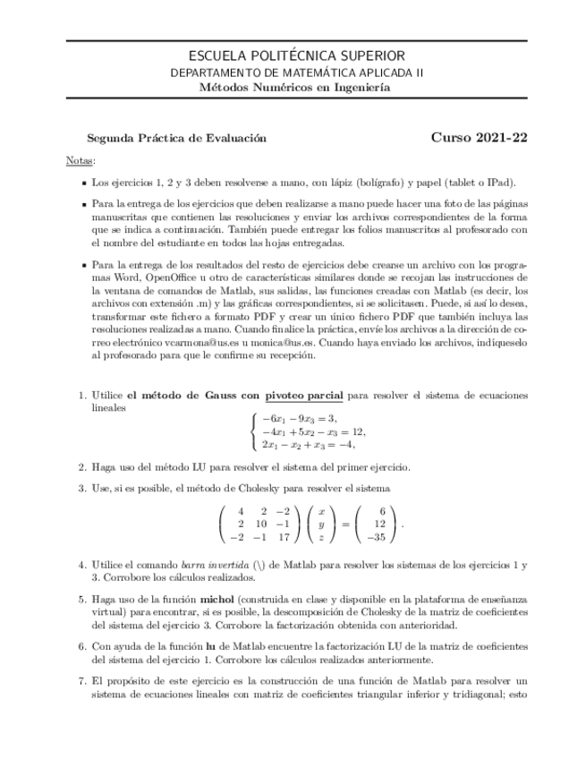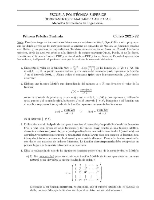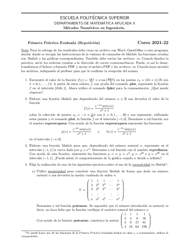 He publicado nuevos examenes de 4º Métodos Numéricos en la Ingeniería: ENUNCIADOPracticaEvaluada1.pdf