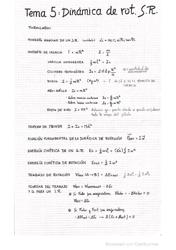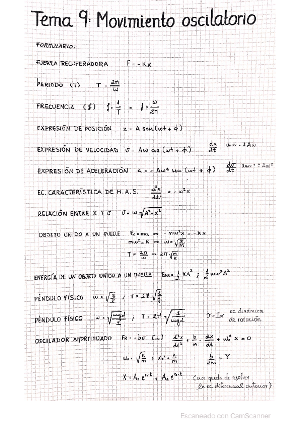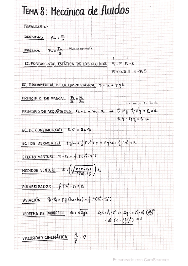 Formulario Física. Tema 8 - Tema 13