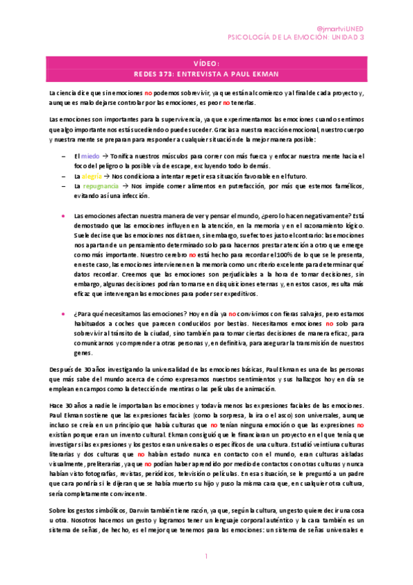 Resumen de la entrevista a Paul Ekman. Entrevista de interés para la unidad 3 de Psicología de la Emoción.