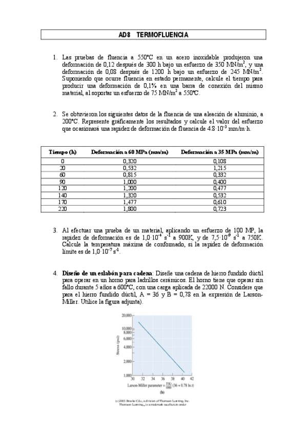 He publicado nuevos ejercicios de 3º Ingeniería y Tecnología de materiales: Problemas Termofluencia Resueltos.pdf