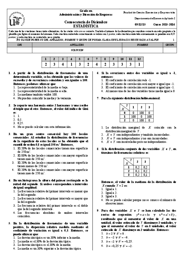 He publicado nuevos examenes de 1º Estadística: Examen 2015 Diciembre Resuelto