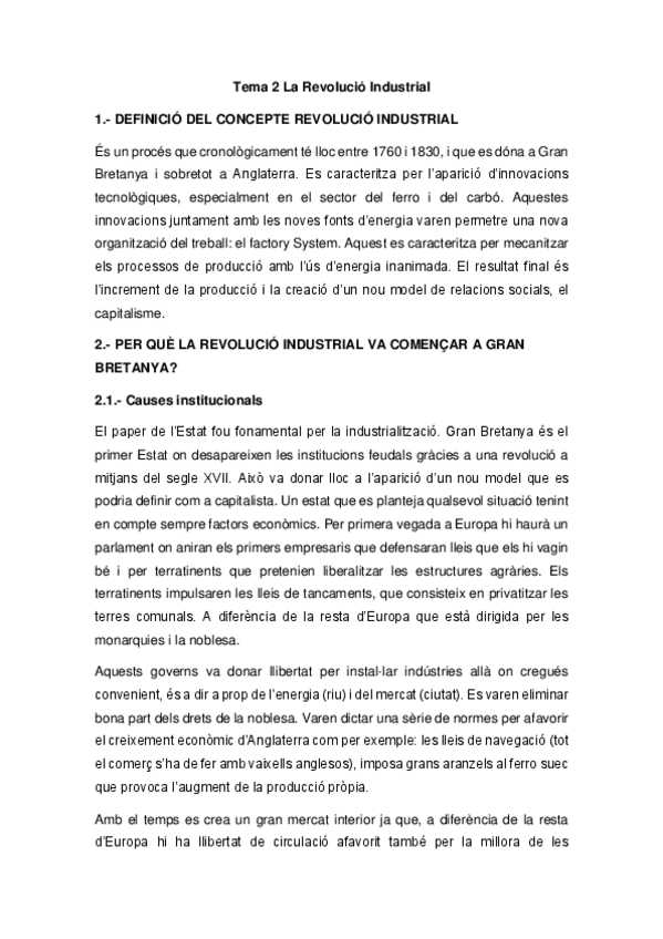 He publicado nuevos apuntes de 1º Història del Dret / Història Econòmica: TEMA 2. LA REVOLUCIÓ INDUSTRIAL.pdf