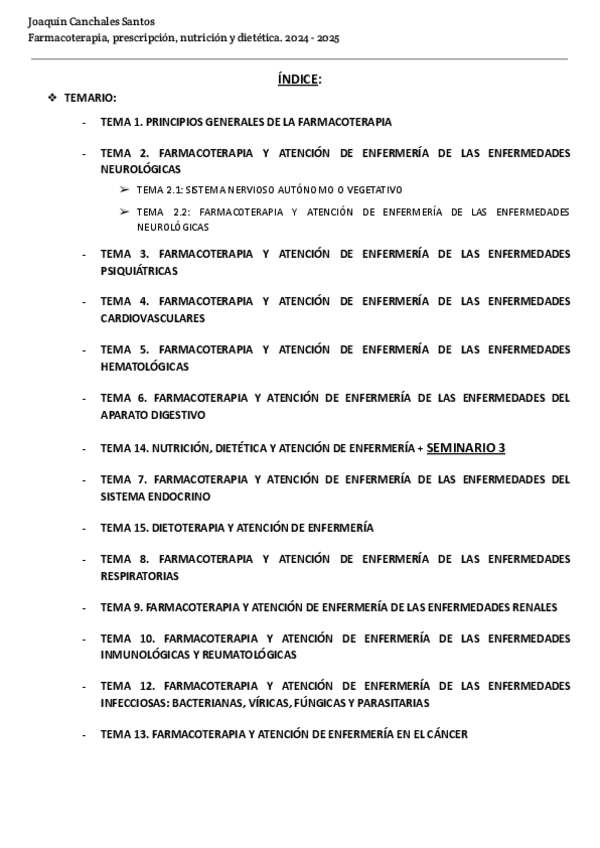 TEMARIO FARMACOTERAPIA MACARENA 2024 - 2025