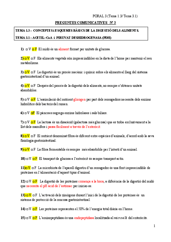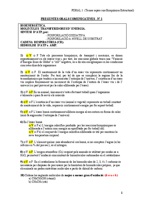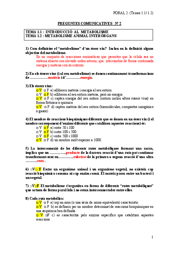 He publicado nuevos ejercicios de 2º Metabolisme: Respuestas PORAL