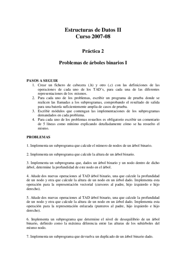 He publicado nuevos practicas de 2º Estructuras de Datos no Lineales: Práctica 7.pdf