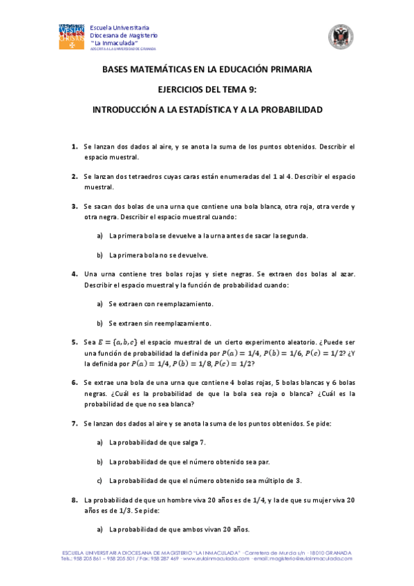 He publicado nuevos ejercicios de 1º Bases Matemáticas Para la Educación Primaria: ejercicios Tema9 Matemáticas.pdf
