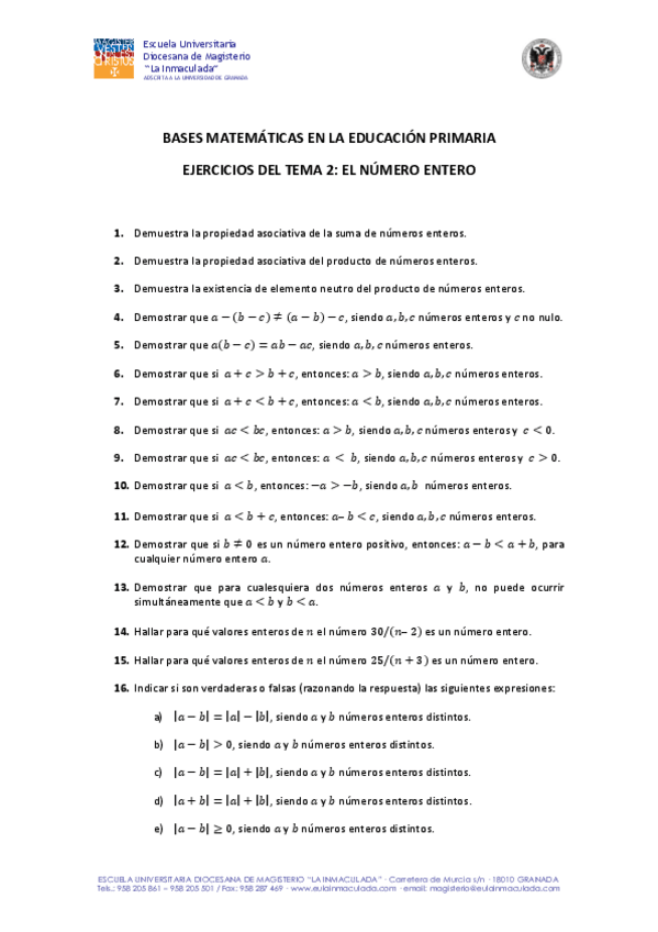 He publicado nuevos ejercicios de 1º Bases Matemáticas Para la Educación Primaria: ejercicios Tema 2 Matemáticas.pdf