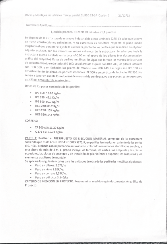 He publicado nuevos examenes de 3º Obras y Montajes Industriales: Ejercicio-Examen-3o-Parcial-2324.pdf