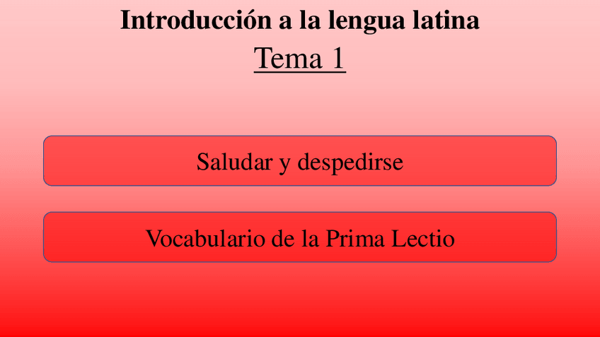 Apuntes del Tema 1 de Introducción a la Lengua Latina. Recomiendo visualizarlo en PC y en modo presentación.