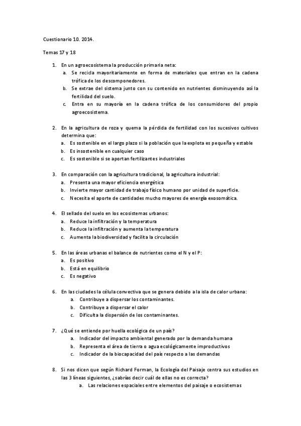 He publicado nuevos examenes de 2º Ecología: Cuestionario 10 temas 17 y 18.pdf