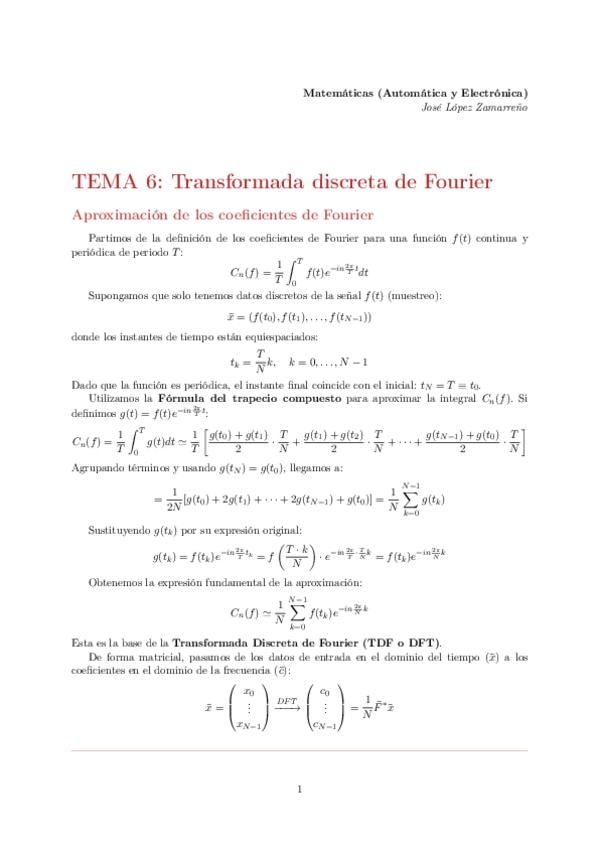 Tema 6: Transformada discreta de Fourier. Matemáticas (Automática y Electrónica)