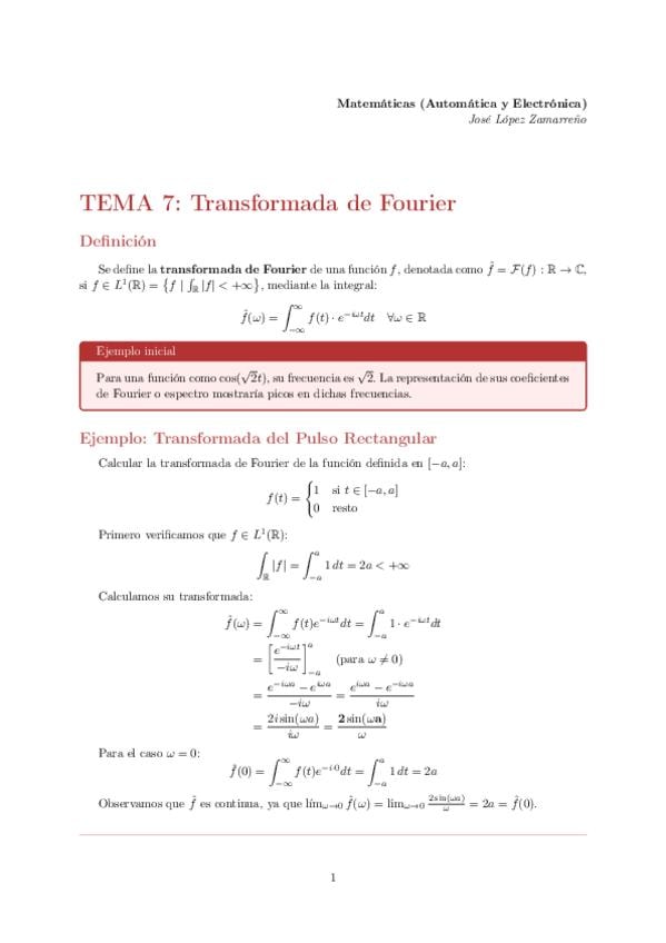 Tema 7: Transformada de Fourier. Matemáticas (Automática y Electrónica)