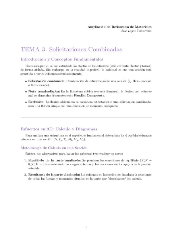 Tema 3: Solicitaciones combinadas. Ampliación de Resistencia de Materiales