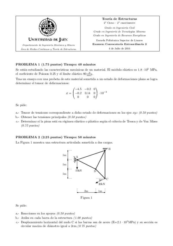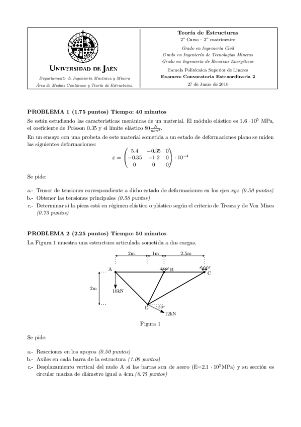 He publicado nuevos examenes de 2º Teoria de Estructuras: examenes mayo/junio 2016 solucionados