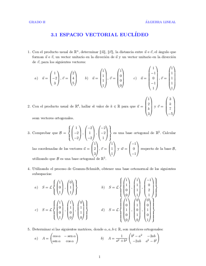 He publicado nuevos ejercicios de 1º Álgebra Lineal: Espacios Euclideos 2015 Con Soluciones