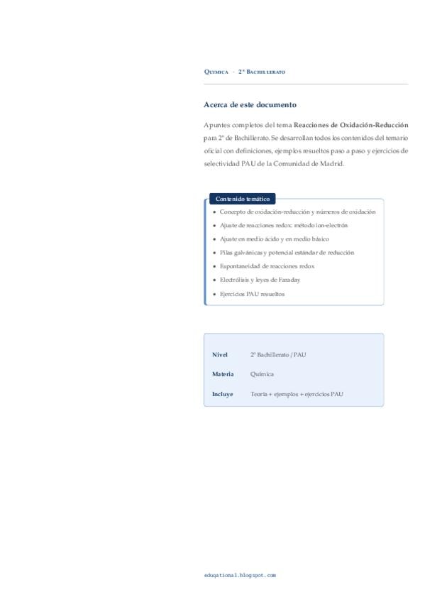 Apuntes sobre el tema de ajuste de reacciones oxidación-reducción. También se incluyen pilas y electrólisis.