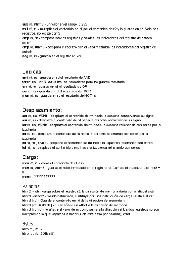 Aquí encontrareis todas las instrucciones necesarias para la programación en ensamblador.