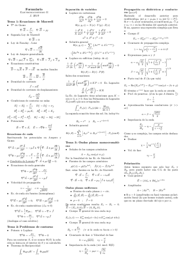 He publicado nuevos apuntes de 2º Electromagnetismo II: FormularioElectroII.pdf