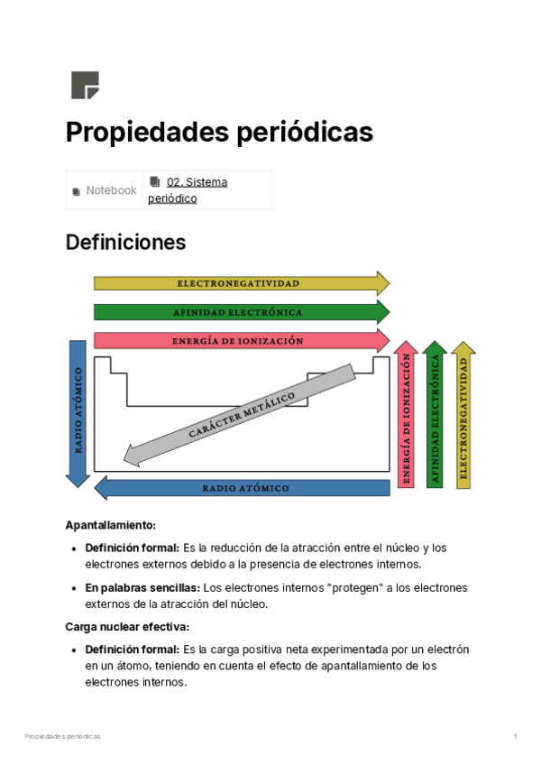 Apuntes esquemáticos para entender las propiedades periódicas de los elementos