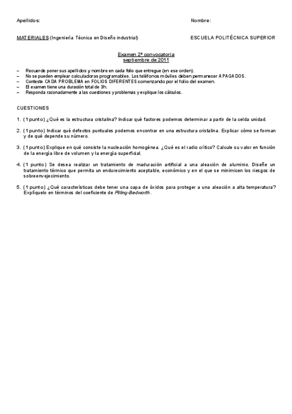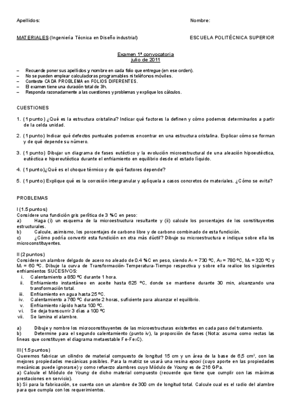 He publicado nuevos examenes de 3º Ingeniería de Materiales: 2015-11 - Test.pdf
