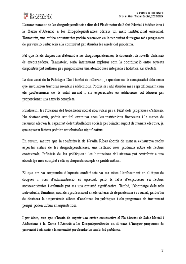 He publicado nuevos apuntes de 3º Sistemes de Benestar Social II: Conferencia-Drogodependencies.pdf