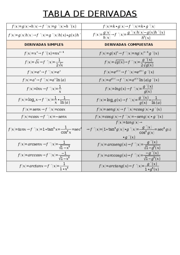 TABLAS DE DERIVADAS E INTEGRALES MUY ÚTILES