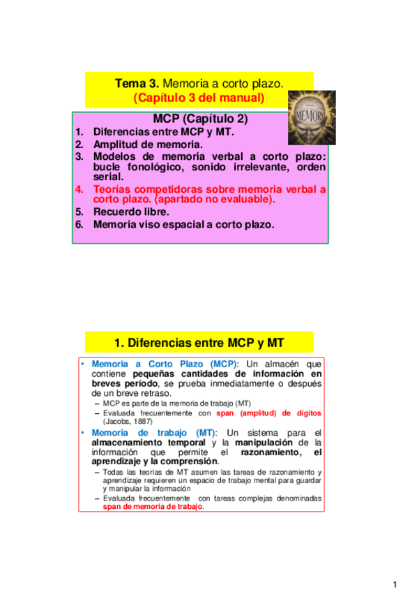 He publicado nuevos apuntes de 2º Psicología de la Memoria: Diapositivas