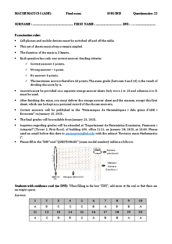 He publicado nuevos examenes de 1º Matemàtiques I: Examen-Final-Model-33-Catala-i-Castella-RESPOSTES.pdf