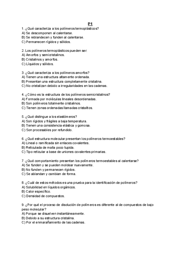 He publicado nuevos test de 4º Materiales Avanzados, Poliméricos, Compuestos: TEST PRÁCTICAS 2do PARCIAL (P3, P4 y P5))