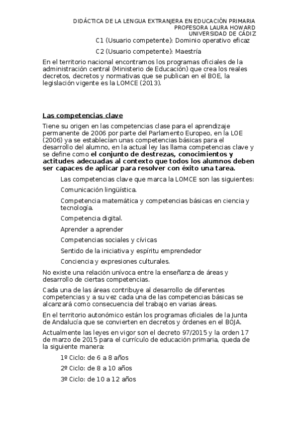 He publicado nuevos apuntes de 2º Didáctica de la lengua extranjera en Educación Primaria (Inglés / Francés/Alemán): Teoría Didáctica de la Lengua Extranjera.docx