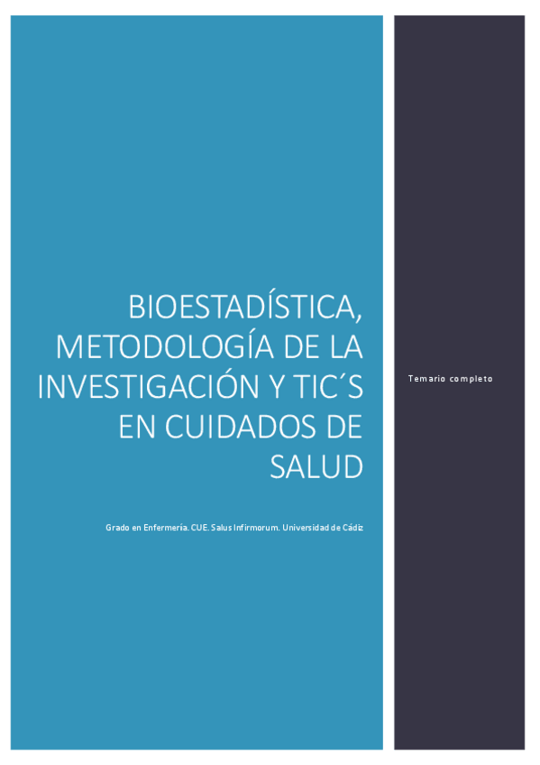 He publicado nuevos apuntes de 1º Bioestadística, Metodología de la Investigación y TIC´s en Cuidados de Salud: Estadistica-probabilidad.pdf