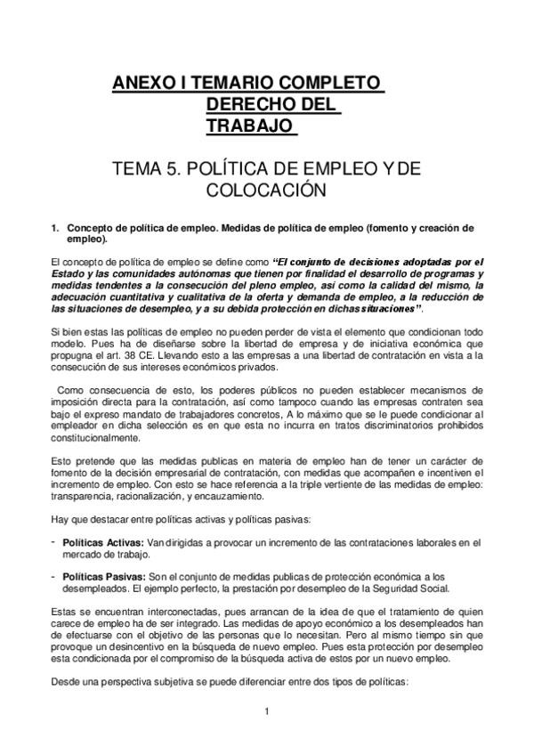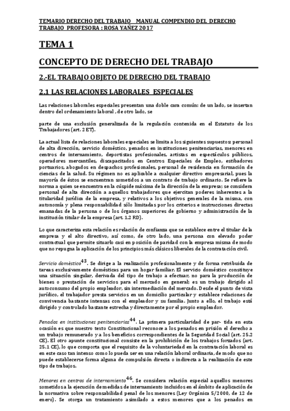 TEMARIO MANUAL DERECHO DEL TRABAJO Y DE LA SEGURIDAD SOCIAL PROFESORA ROSA 2017