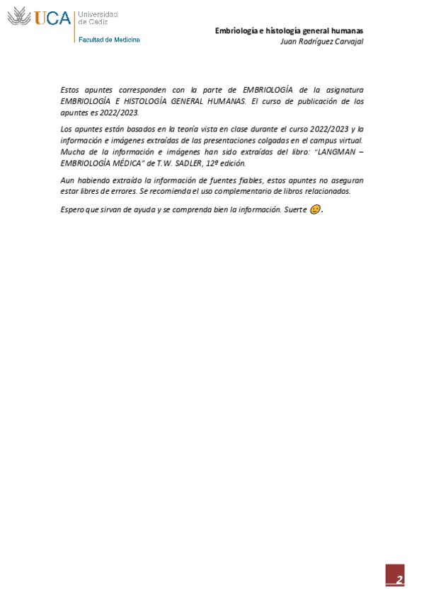 Apuntes de la parte de EMBRIOLOGÍA de la asignatura EMBRIOLOGÍA E HISTOLOGÍA GENERAL HUMANAS