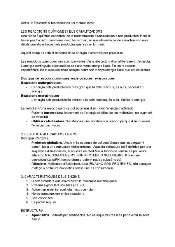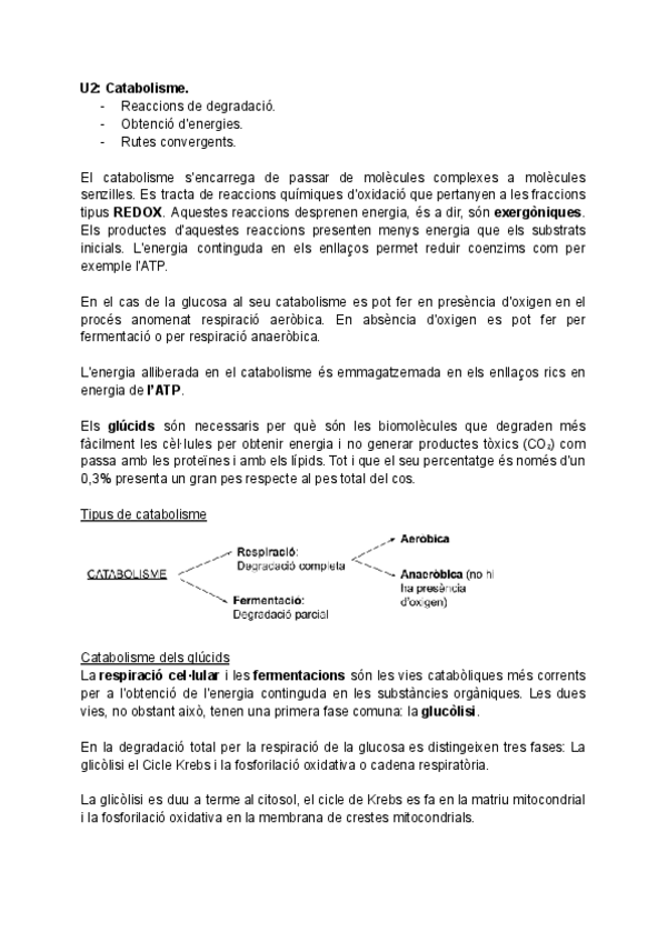 Els enzims, ATP, tipus d'èssers vius segons el metabolisme, catabolisme dels glúcids, glicòlisi, fermentacions, fosforilació oxidativa, catabolisme dels lípids, catabolisme dels àcids nucleics, respiració anaeròbica...