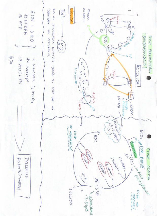 Esquema and tots els processos i fases de la fotosíntesi per la selectivitat.