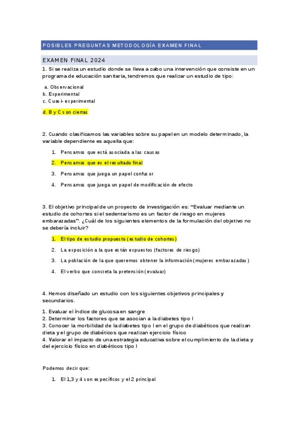 He publicado nuevos examenes de 1º BASES CIENTÍFIQUES I BIOESTADÍSTICA APLICADA A LES CIÈNCIES DE LA SALUT: POSIBLES-PREGUNTAS-DE-METODOLOGIA.docx