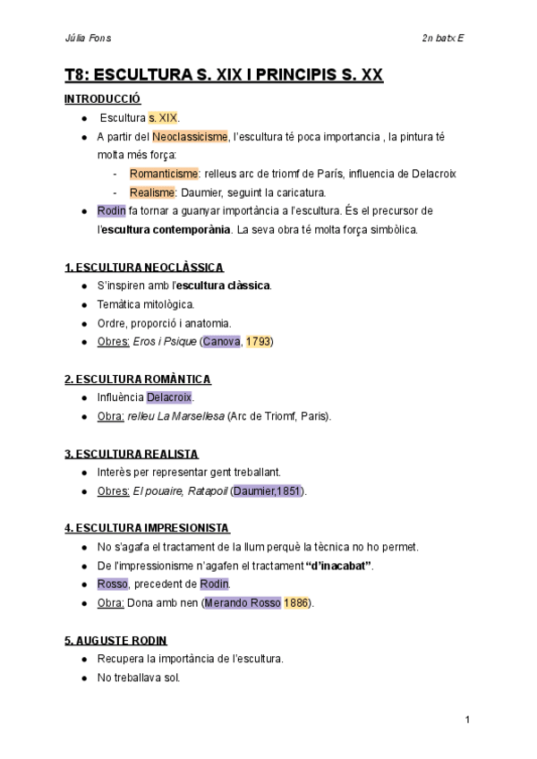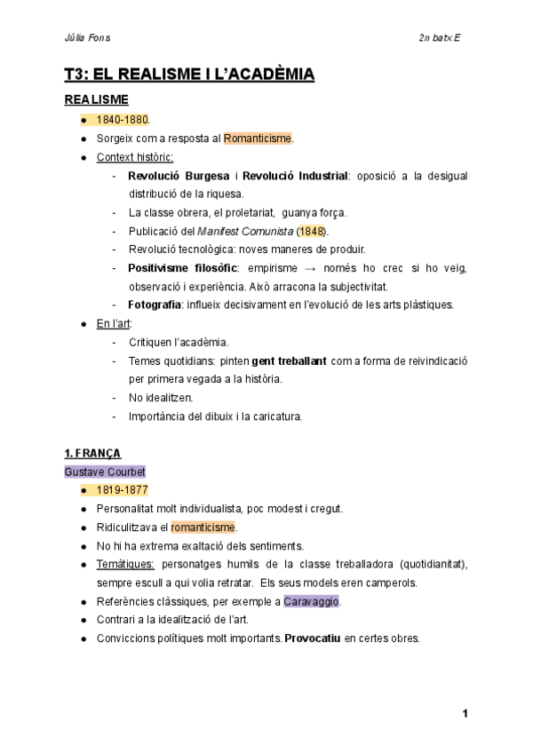 En català. Apunts classe, faltaria ampliar context històric. Del Romanticisme als anys 70.