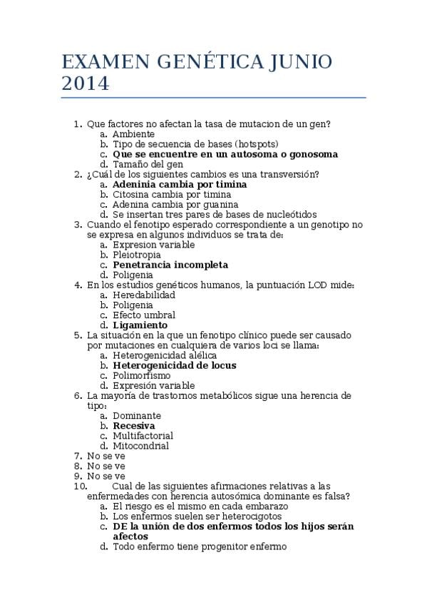 Exámenes De Genética 4º