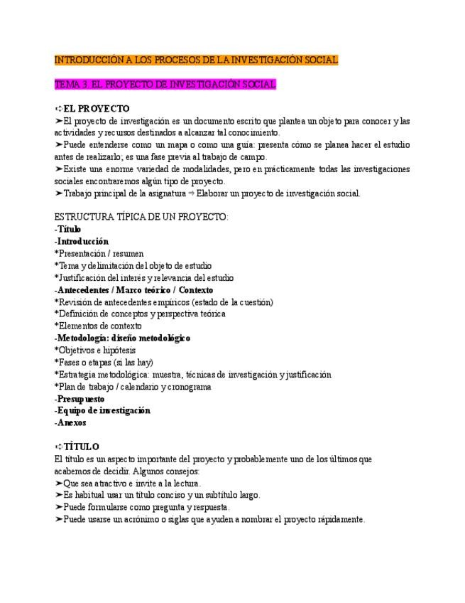 Tema 3: El proyecto de investigación social