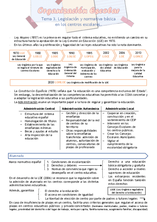 ORGANIZACIÓN ESCOLAR (resúmenes)