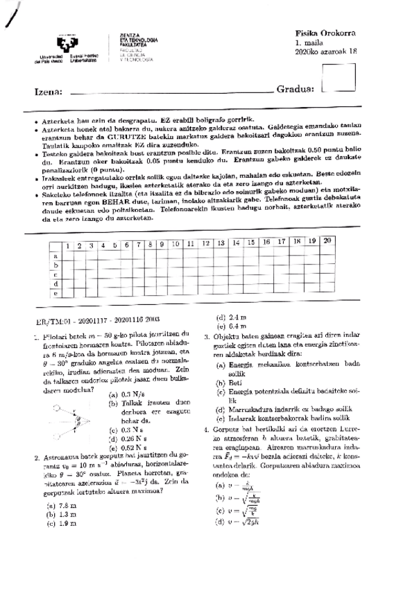 He publicado nuevos examenes de 1º Física General: 2. Kuatria test