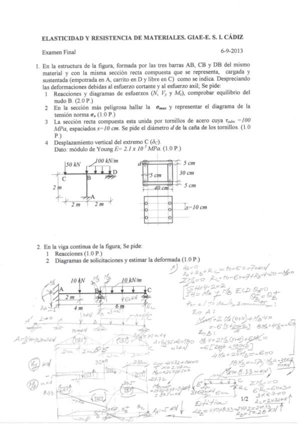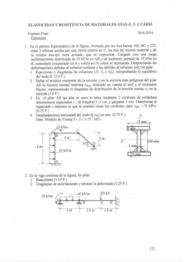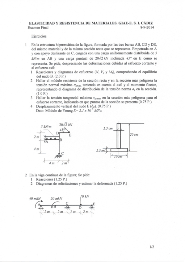 He publicado nuevos examenes de 2º Elasticidad y Resistencia de Materiales: EXÁMENES ERM RESUELTOS PASO A PASO